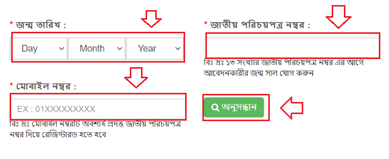 - Enter your NID number, date of birth, and mobile number